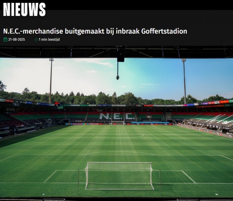 8月22日荷兰奈梅亨俱乐部发布官方声明,就主场高费尔特球场遭窃事件作出回应。