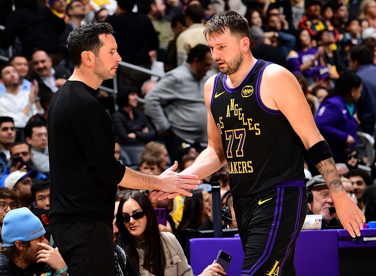 湖人队喜提3连胜,老詹和东契奇携手当选球队官方封面海报人物,实至名归!此役,老詹出战33分钟,12投8中(三分球5中1),罚球8中4,贡献21分+7篮板+7助攻+2盖帽;东契奇出战37分钟,22投10中(三分球10中3),罚球5中4,砍下27分+10篮板+7助攻+1盖帽。美中不足的是,老詹和东契奇加起来出现了12次失误。即便如此,老詹和东契奇对于这支湖人队的重要性还是不言而喻——有他们在,湖人队未必是争冠强队;没有他们,湖人队只会举步维艰!
